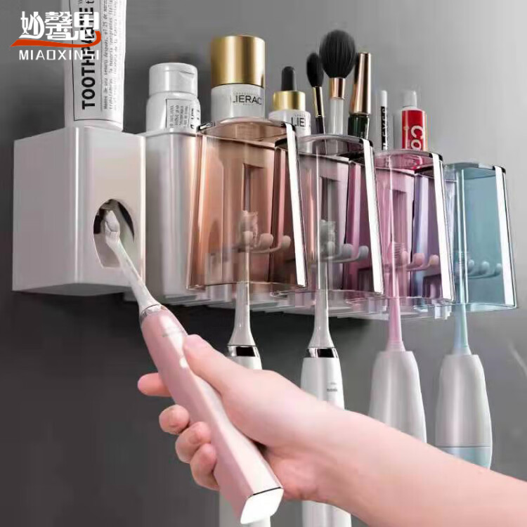 妙馨思牙刷架免打孔漱口杯套装壁挂式牙膏盒置物架厕所挤牙膏神器